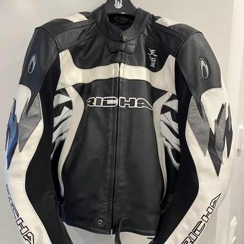 Myydään Sinisalon moottoripyörätakki koko 54 jossa on irrotettavat olkapää ja kyynärpää suojat.