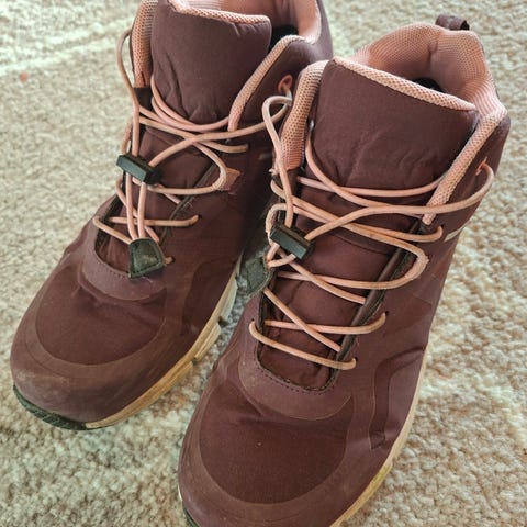 Take off merkkiset karvavuoriset välikausitennarit.
