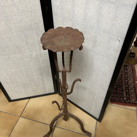 Lattialle kynttilänjalka takorautaa. Korkeus 90 cm.