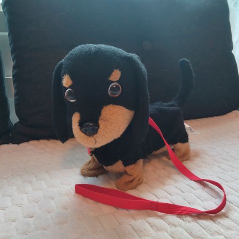 Mukava muovinen kantolaukku pehmeälle koiralle ja lahjaksi pehmeä nalle.