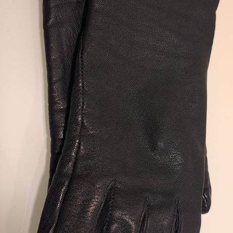 Käyttämättömät naisten mustat nahkahanskat,koko 8,valmistaja Mutka.Postitus onnistuu.