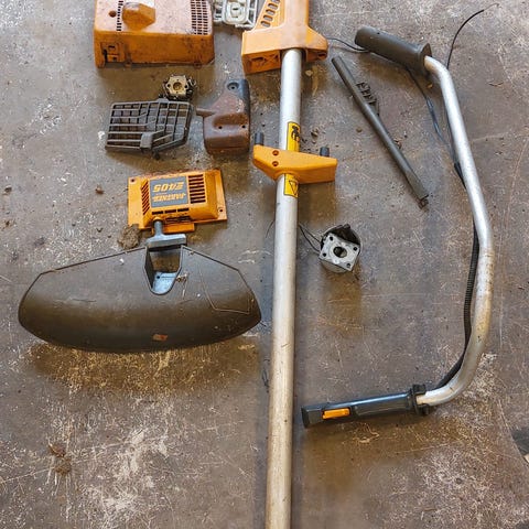 Pro tools 1400w 52CC. Kuvanmukainen toimiva. Mukana tulee kuvassa näkyvät valjaat. Huomioi kuvan 2. pieni halkeama muoviosassa sekä teräsuojuksesta lohjennut pala (kuva 5.). Ei vaikuta käyttöön. Mukana kulunut terotusta/uusimista vaativa kolmioterä. Tästä näppärä kevyt saivaussaha vaikkapa mökin ympäristön siivoamiseen!