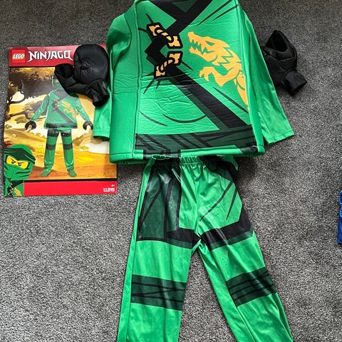 Tästä pienelle legofanille Lego Ninjago rooliasut Lloyd ja Kai. Hyväkuntoiset muutoin, mutta Kain asussa pientä kulumaa kauluksessa (ks.kuva). Kuvissa asut ovat päällä 4.lkalla olevalla lapsella, mutta sopii kokonsa puolesta parhaiten eskari-tokaluokkalaiselle (100-120cm). Sisältää asun, naamarin ja legokädet/hanskat molemmille hahmoille.