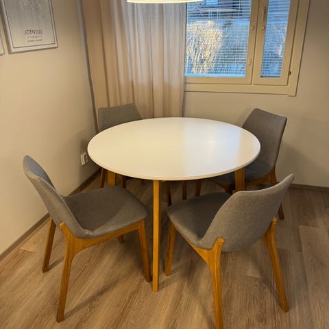 Nyt olisi myynissä erinomaisessa kunnossa pöytä ja 6 kpl tuolija. kaikissa tuoleissa on pehmusteet mukana ostettu uutena 250€ ja käytetty vain kerran, elikkä upouudet!