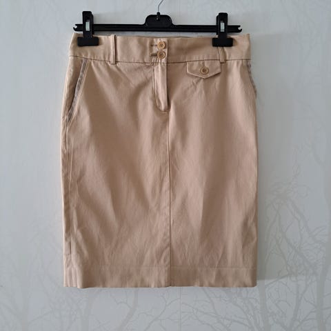Ruskea hame 100% puuvillaa. Sivussa vetoketju, vyö irrotettavissa. Mitat: