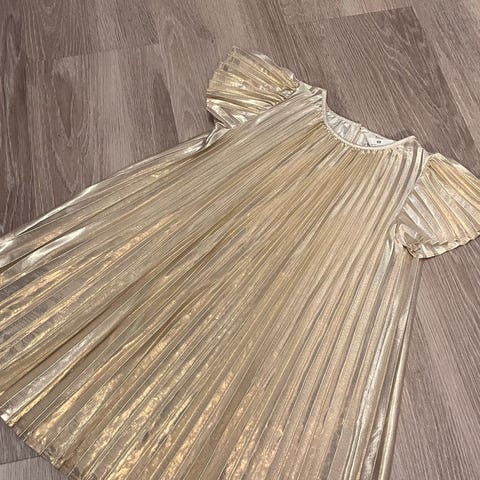 Myydään siisti kullan sävyinen vekkihame / pliseerattu juhlahame. Musta kuminauhavyötärö. Koko 140.