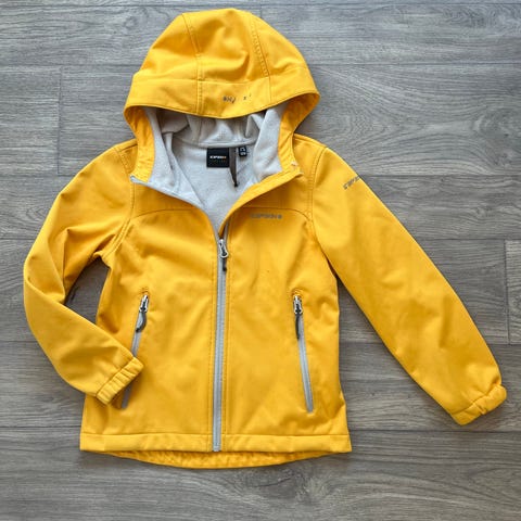 Myydään oranssi Icepeak softshell vk-takki kokoa 128cm. Irrotettava huppu. Toisen taskun vetoketju rikki. Nimikoitu.