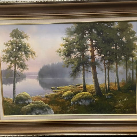 J. Parviaisen maalama taulu vuodelta -95. 97cm x 72cm kehyksineen.