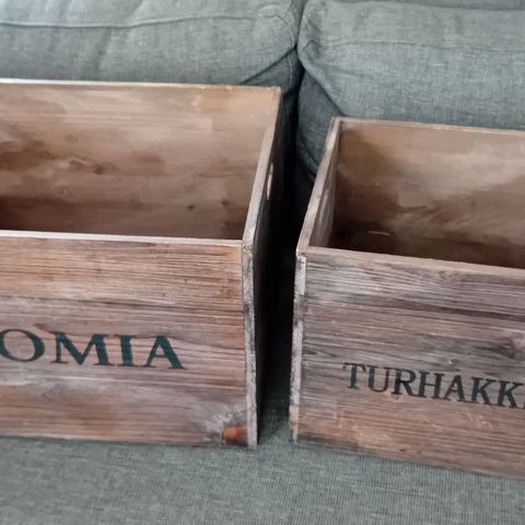 Myyn vanhan luonnonvaalean puisen säilytyslaatikon. Keskellä kahva. Iän tuomaa kulumista, muuten ehjä. Kotiin sisustukseen tai pihalle vaikkapa callunoille ja havuille. Hinta 10 euroa.