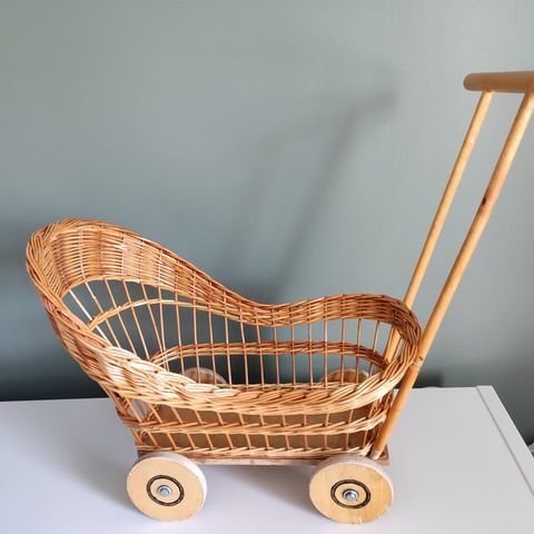 Rottinkinukenvaunut, uudistettu kuomun kangas, lisäksi tehty tyyny, peite ja patja. Nouto ja käteismaksu.