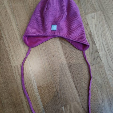 Tykätty, paljon pidetty Reiman pipo, korvien kohdalla tuulensuojat. Ok kunto mutta vaaleat raidat alkuperäisestä tummentuneet.