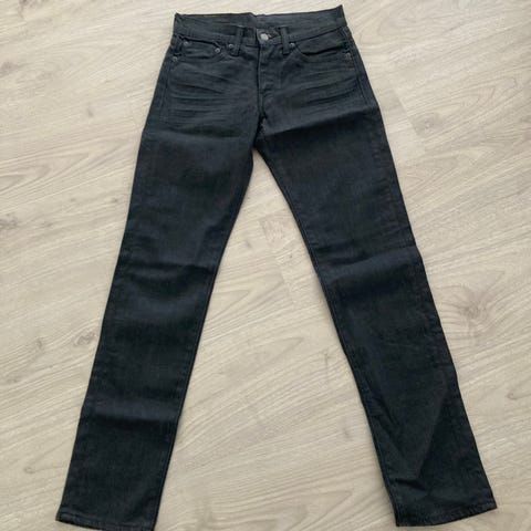 Kapeat stretch farkut, menevät hyvin myös 30 vyötäröiselle. Polvien kohdalla jo jo ostaessa repeämää muistuttavat kulutukset. Ovat olleet päällä vain muutaman kerran, jonka jälkeen pesty. Melkein uuden veroiset siis.