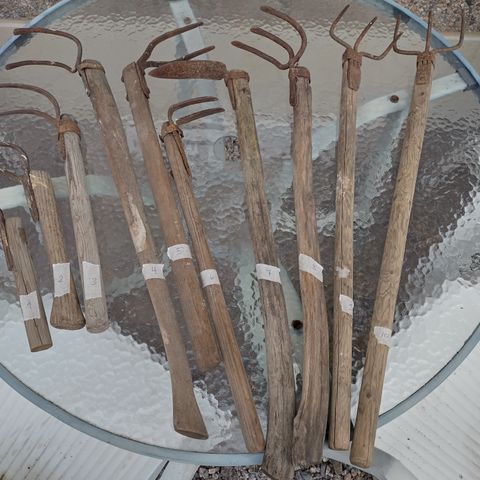 Hakusanoja: Heinähanko perunakuokka talikko sirppi viikate puuhöylä puukko