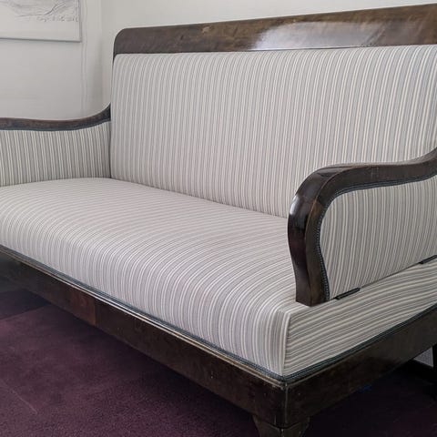 Myydään nahkapuntainen vanha ompelupalli/ompelurahi.