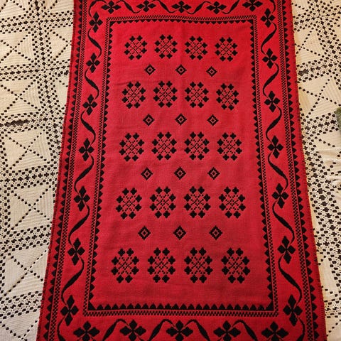 Kiva pirteä kuviointi, tonttuaiheinen tähtikuvio. Mitat 200 x 250 cm. Iso täkkipussi tai patjan suojuksena voi myös käyttää. Kiva jouluinen kangas. Iso koko, voi myös ommella omiin tarpeisiin sopivaa.