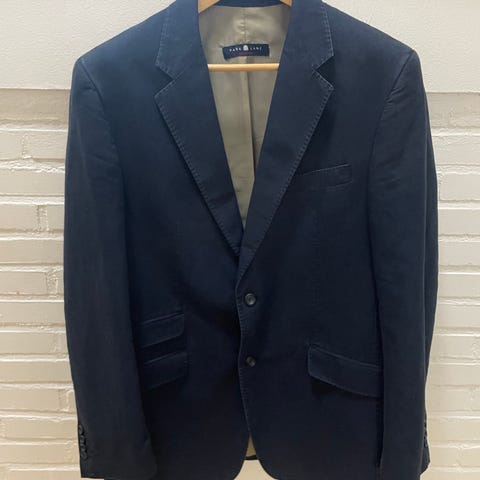 Myydään valko-siniraidallinen Park Lane irtotakki (pikkutakki) kokoa C52. Edessä 2 nappia, oikeaa taskua ja yksi koristetasku. Takaa suora leikkaus ja keskellä halkio Hihoissa 4 nappia. Päällikangas 100% puuvilla, valkoinen vuori 100% viskoosi, vuorissa 2kpl napillinen povitasku. Kainalo-kainalo n. 53cm, korkeus takaa n. 80cm, hihan pituus ulkoreunasta n. 64cm