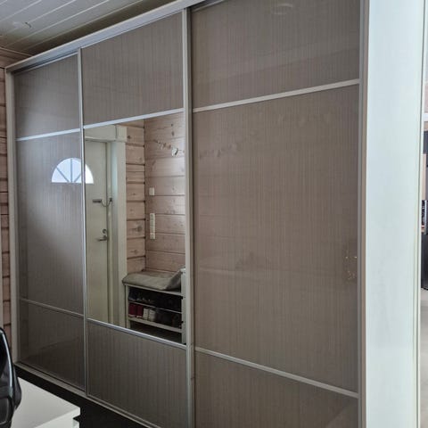 Hyväkuntoiset korkealaatuiset liukuovet 2520x830 8kpl (4peiliove), kiskot 3250 2kpl.+hyllyt.Jos kiinnostaa,saa tarjoaa.