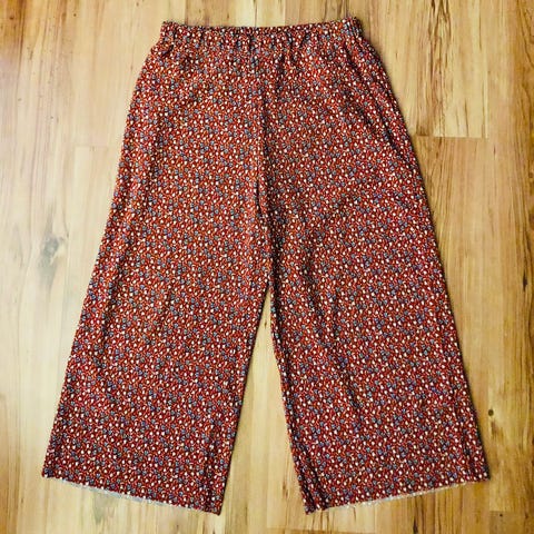Kukkakuvioiset rennot housut. Hyväkuntoiset, sopii s koolle.