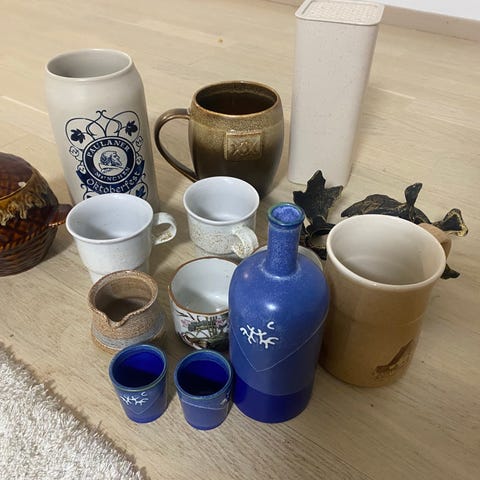 Vintage käsinmaalatut kannu ja mukinaluset