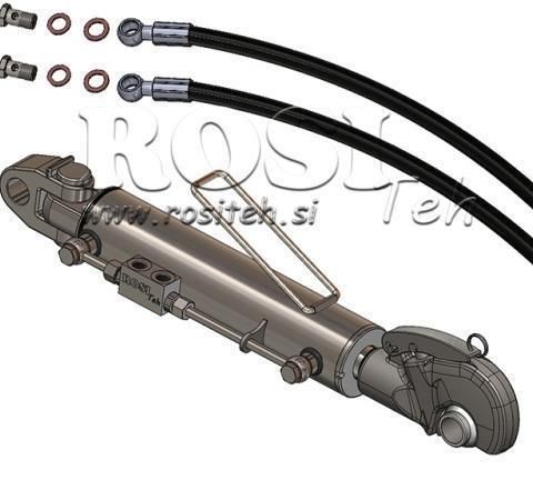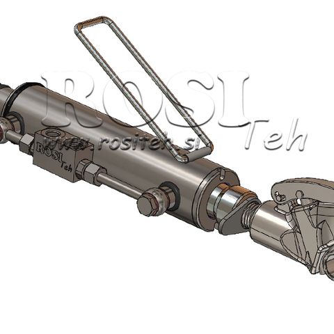 Erikoishydraulinen vetosylinteri, roomalainen mutteri tai traktorin poikkipalkki (pohjimmiltaan automaattinen vetosylinteri, jonka silmälaakerin sijaan sylinterissä on erityinen koukku, joka mahdollistaa suuremman liikkumisen vasemmalle tai oikealle), varustettuna sulkuventtiilillä.
