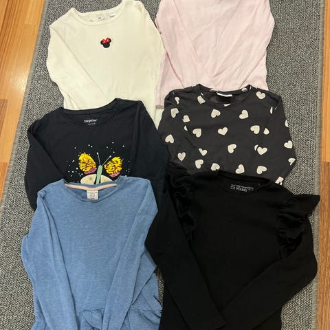 - T-paidat koossa 122-128. Harmaamaleerattu nappipaita max kerran käytetty ja lähes uudenveroinen, muissa pientä käytön jälkeä; haaleaa tahraa, haalistumaa tai haitua. Kaikki kuitenkin mielestäni yieisilmeeltään siistejä.