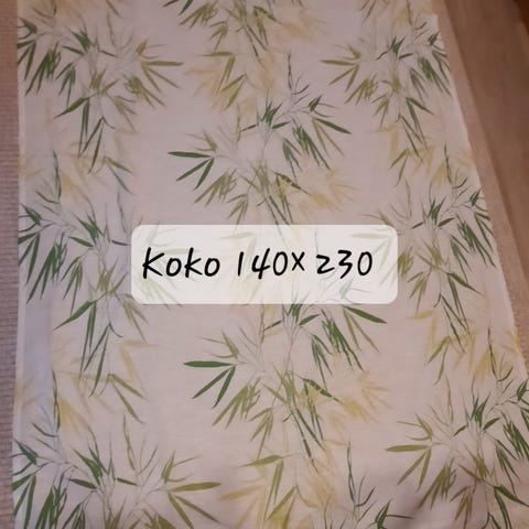 Ei käytetty. Leveys 140cm,pituus 155cm.vahva puuvilla, sopii myös pöytäliinaksi. Kaunis keväinen kuosi. Kukat 1 e kolikon kokoiset.