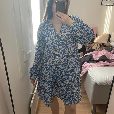 Lindex S koon Holly & Whyte merkin ihana sininen ja kuviollinen kesämekko missä vyö hyvä myös juhlamekko arkimekko hellemekko on monikäyttöinen :)