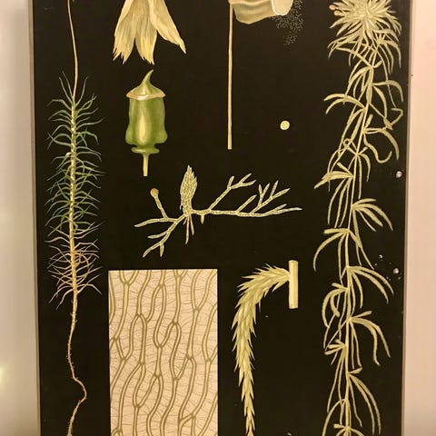 Opetustaulu Ebba Masalin "Kasvien lisääntyminen", alkuperäinen vuodelta 1942. Koko 60x83.