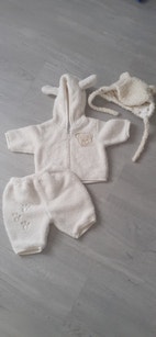 Ihana valkoinen pehmoinen pörröinen vaatesetti vauvalle, koko 56cm (hattu H&M, housut ja takki new baby) nouto mellunmäestä.