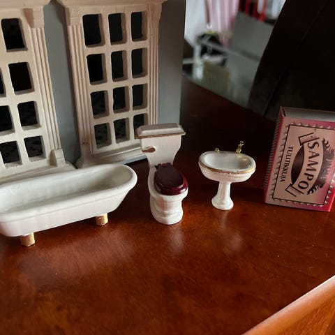 keräily nukkekoti messinki kynttilänjalka miniatyyri