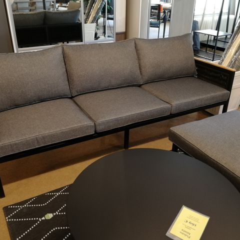 Sohvassa on jämäkkä alumiinirunko ja vaahtomuovipehmusteet, kangas on helppohoitoista polyesterikangasta.