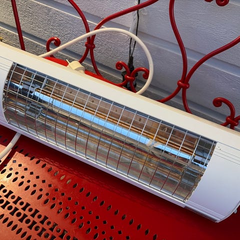 Pari kertaa käytetty. Kaukosäädin toimii. 1,2 ja 3 kw tehon säätö sekä ajastin. Helppo kiinnittää seinään. Vain nouto.