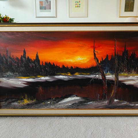 Pekka Vuoren teos Suomenlinna II kehystettynä. Taulun koko 67 x 52cm.
