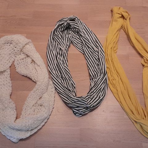 Myydään käytetty valkoinen kevyt huivi. Kankaassa kultaisia koristeraitoja.