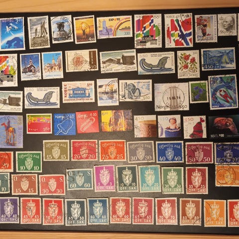 Kuvan norjalaiset postimerkit. Voin myös postittaa.