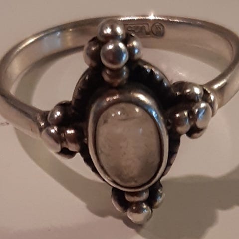 Upea sormus hopeaa, Kalevala. Leimat on. Vihreä kivi, jossa kauniisti elävyyttä. Koko 17-17,5 cm. Kiviosan korkeus kehyksen kanssa 2,4 cm.