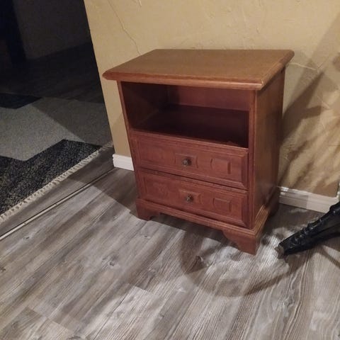 Mielenkiintoinen apu-/puhelin-/yöpöytä, joka kätkee liukukannen alle piilolokeron. Tavaroihin pääsee käsiksi, vaikka pöydällä olisi tavaraa. Kuljetuksesta voidaan neuvotella.