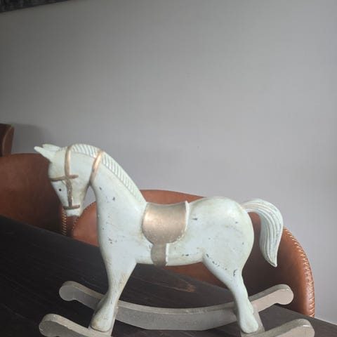 Kaunis pieni keinuhevoskoriste. Parista kaviosta naulat löysällä. Ollut meillä koristeena mutta kokonsa puolesta voisi sopia vaikka varovaisiin Barbien pikkusiskon leikkeihin.