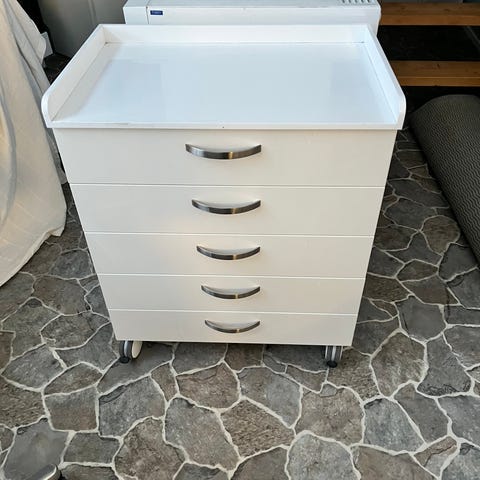 Hieman erikoinen huonekalu vaikka eteisen pötdäksi. Toiminut myös TV-tasona (korkeus 80 cm). Jalkojen kiinnitys pulteilla. Avaimena kuusiokoloavain.