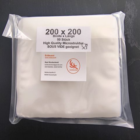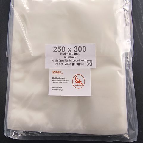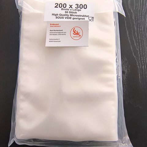 Microuritettu vakuumipussi 90 my vahvuudella 300 x 400 m. Markkinoiden paras vakuumipussi tyytyväisyys takuulla, jos et ole tyytyväinen niin silloin rahat palutetaan! Löytyy myös vahvempaa 160 my pussia ja muita kokoja n. 50 kpl. Pienin 80 x 100 mm ja suurin 700 x 1000. Rullat 15, 20, 22, 25, 28, 30 ,35 ja 40 cm vahvuuksilla 90 ja 160 my.