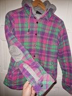 Kokoa 38 hupullinen napitettava hupparityylinen "takki". Saa kysyä mittoja. Värikäs, ruudullinen, ei vedenpitävä, kankainen (100% polyesteria), sisällä liukas pehmeä vuori. Kevyt takki kevääseen tai syksyyn tai huppariksi. Todella mukava, ollut tykätyssä käytössä raikkaissa kevätilmoissa.