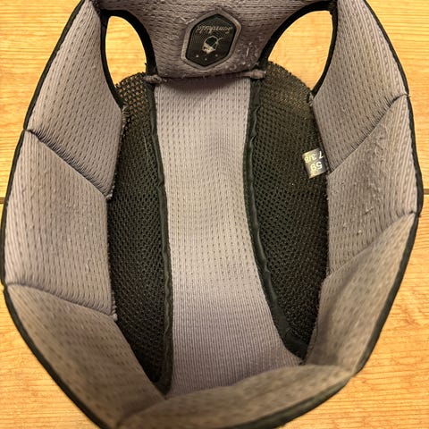 Vanhan mallin normaali samshield kypärään yksityiskohta. Kuoreen M menevä.