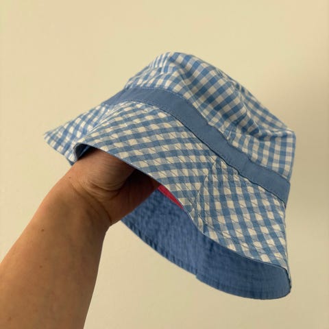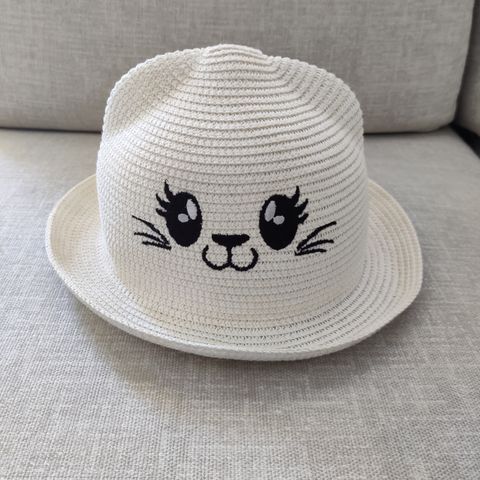 Myydään n. 1-vuotiaalle sopiva kesäinen hattu/huivi. Ohut kangas helteille. Sidotaan naruilla taakse.