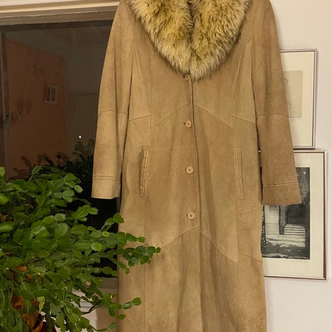 Uudenveroinen Beige Teko-Mokkanahkatakki. Koko: 38 Pituus Olkapäästä Alareunaan 126 cm. Merkki: H & M. Ei Saa Tinkiä!