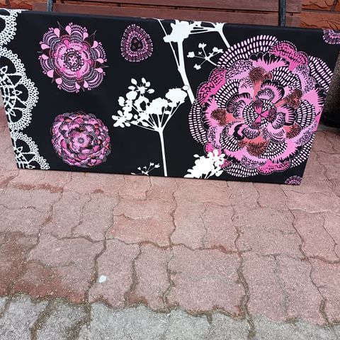 Hieno ja näyttävä Vallilan pingotettu kangastaulu. Ei löydä paikkaansa uudesta kodistamme, joten joutaa seinälle uuteen kotiin. Nouto Lahden rautatieaseman tuntumasta.