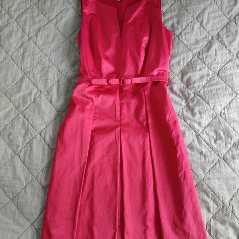 Käyttämätön juhlamekko, Teatro, koko UK 8 (34). Mekon pituus rinnan yläpuolelta helmaan 79 cm, rinnan ympärys noin 80 cm. Mekossa on vuorikangas, jonka päällä laskoksia ja kerroksia ohutta sifonkia. Mekossa on irrotettavat olkaimet ja vetoketju sivulla.