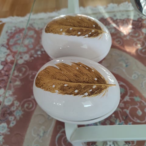 Kaksiosainen pieni "pääsiäismuna".Magneettinen "lukitus" ylä/alaosan välissä. Korkeus n 9cm ja kuppiosa suu n.4cm.