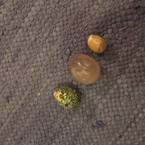 Isossa pussissa noin 4 - 5 dl koristekiviä. Kahdessa muussa purkissa ei lukenut määrää