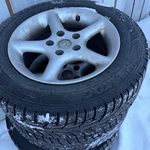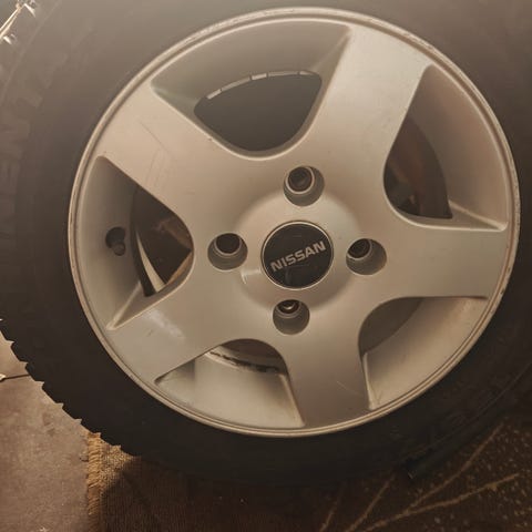 Nissan primerassa olleet talvirenkaat. Nastat poistamalla toimii monta kesää. Pintaa jäljellä kahdessa 7mm ja kahdessa 4mm.
