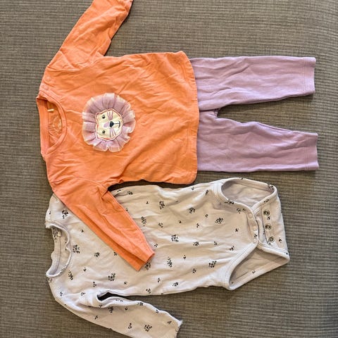 Hyvässä kunnossa setti tytölle koossa 62, se kuluu 2 bodeja, 1 bolero/ neulepusero, 2 sukkia ja lapaset